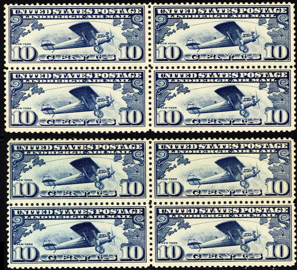 C10, MNH F-VF Two Blocks of Four Stamps CV $100 - Stuart Katz
