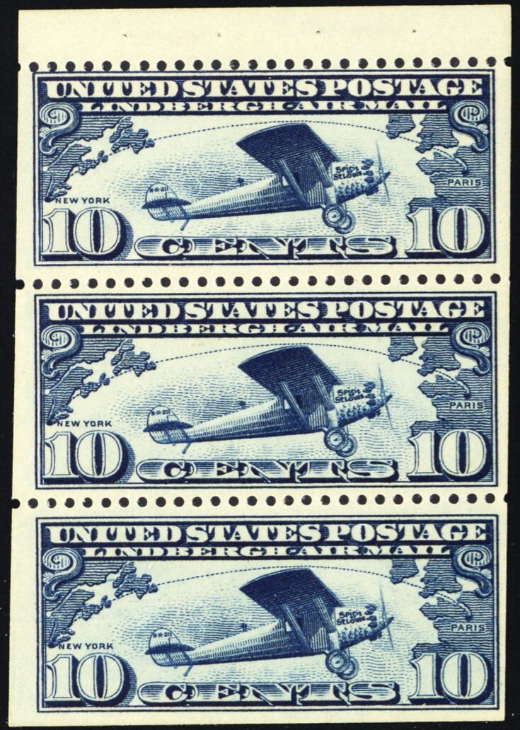 C10a, Mint VF NH 10¢ Lindbergh Airmail Booklet Pane - Stuart Katz
