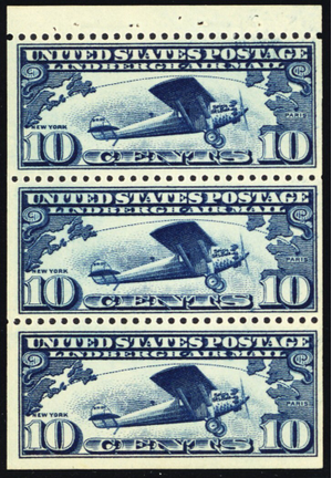 C10a, Mint VF NH 10¢ Lindbergh Airmail Booklet Pane -- Stuart Katz