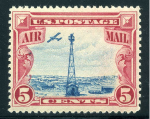 C11, 5¢ Airplane over Beacon, Mint NH, Well Centered