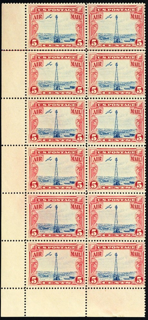 C11, Mint VF NH 5¢ Block of 12 Stamps Cat $120. * Stuart Katz