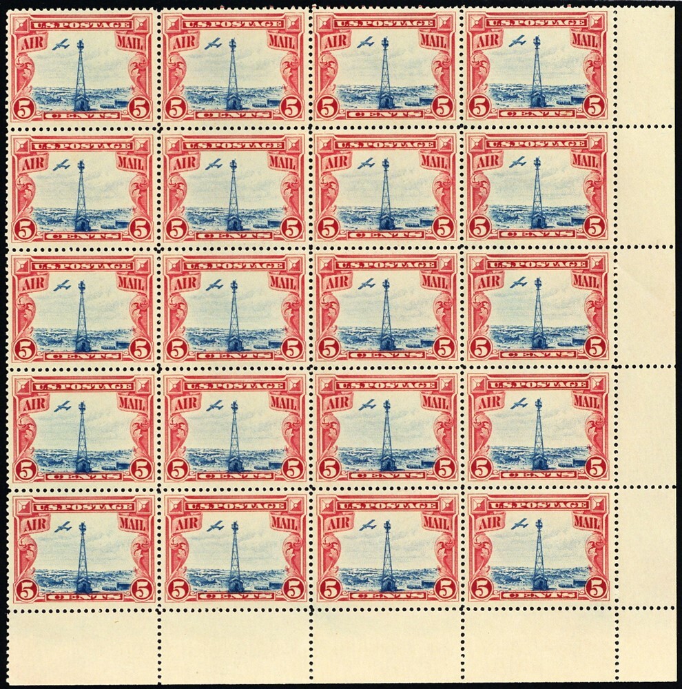 C11, Mint VF NH 5¢ Block of 20 Stamps Cat $200. * Stuart Katz