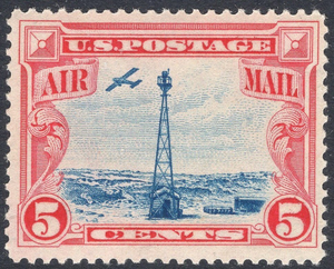 C11 XF MNH OG AIRMAIL-5¢ MAIL PLANE FLYING NEAR BEACON-FRESH!!  A great stamp and very popular early US Airmail stamp showing mail plane flying over Rocky Mountains near a tracking beacon. GEM STAMP. Buy it now for your collection