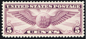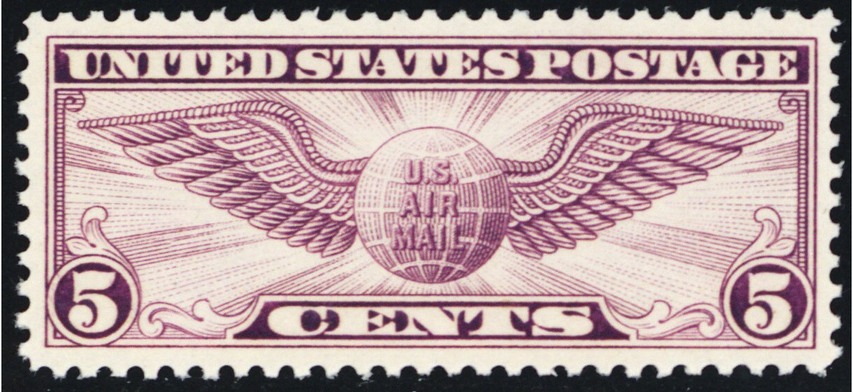 C12, Mint XF NH 5¢ PL# Wings Airmail Stamp * Stuart Katz