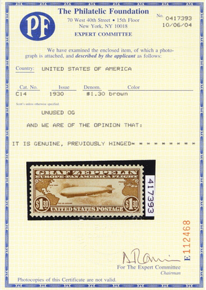 C14, Mint Superb VLH $1.30 Zeppelin With PFC Certificate * Stuart Katz