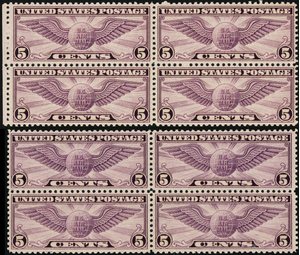 C16, Mint VF NH 5¢ Two Block of Four Stamps CV $68 - Stuart Katz
