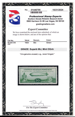 C18, Mint Superb NH 50¢ - With PSE Graded 98J JUMBO Certificate * Stuart Katz