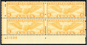 C19, Mint VF NH 6¢ Plate Block of Four -- Stuart Katz