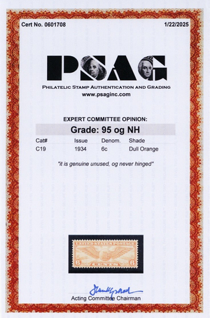 C19, Mint XF/Superb NH 6¢ With Graded 95 PSAG Certificate * Stuart Katz