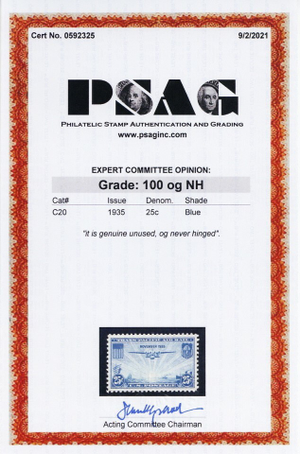 C20, Mint NH Superb GEM 25¢ With PSAG Graded 100 Certificate * Stuart Katz
