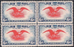 Scott #C23 Superb MNH OG 6c Eagle and Shield Airmail issue. This is a beauty of a Center Line Block from this popular early bi-color Airmail stamp. Post Office Fresh!!