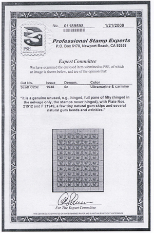 No refunds will be made after 60 days after the sale date unless extra time is granted. Due to the high cost of obtaining certificates we will only refund the cost of the stamp and not the cost of the certificate. For U.S. stamps only certificates from either APS, PSE or from the Philatelic Foundation are accepted, however "graded" certificates or "encased" items are not accepted.