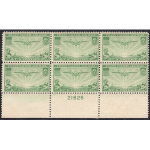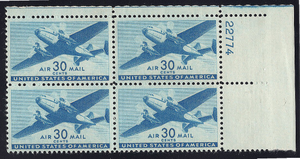 C30 WWII 30c Transport Plane Airmail UR Plate Block-VF MNH OG