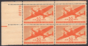 C31 WWII 50c Transport Plane Airmail UL Plate Block-VF MNH OG