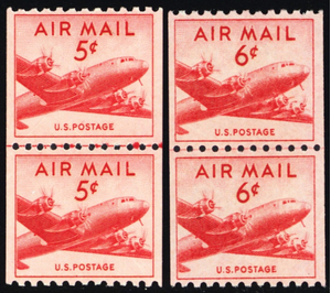 C37, 41, Mint NH 5¢, 6¢ Airmail Coil Line Pairs -- Stuart Katz