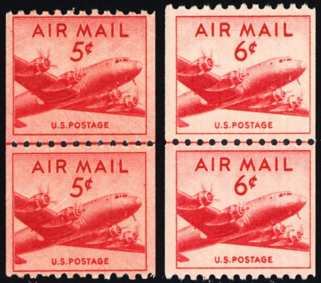 C37, 41, Mint NH 5¢, 6¢ Airmail Coil Line Pairs * Stuart Katz
