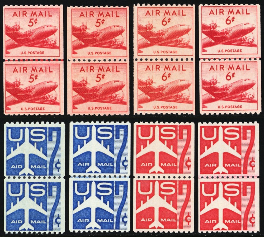 C37//C61, MNH Group of 8 Airmail Coil Prs * Line Prs CV $87.35 * Stuart Katz