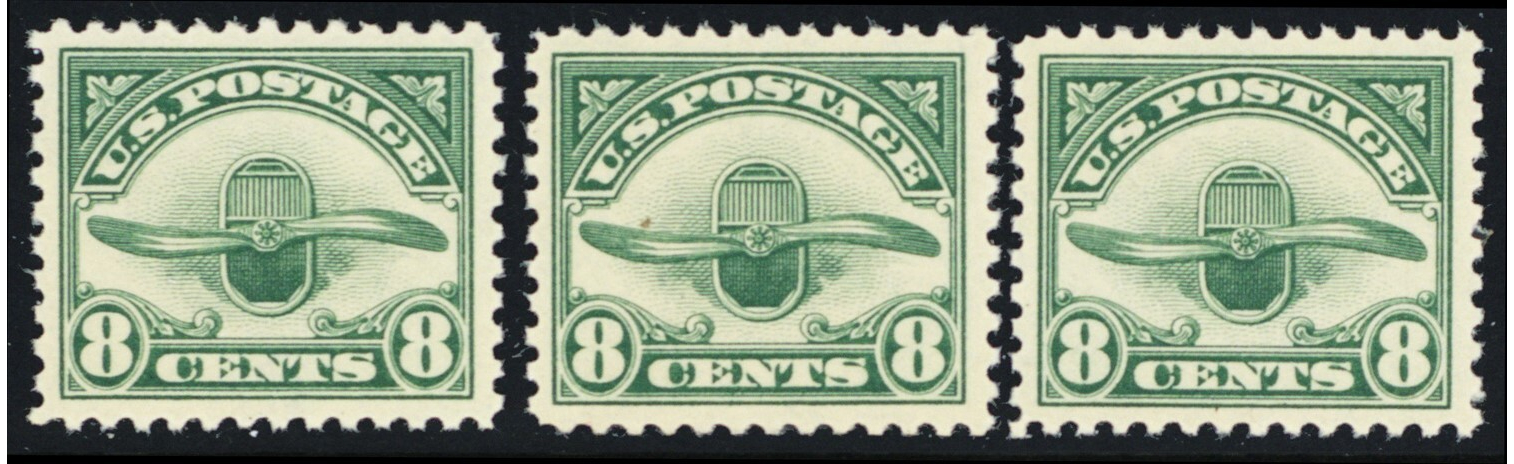 C4, Mint VF NH 8¢ Group of Three Airmail Stamps - Stuart Katz