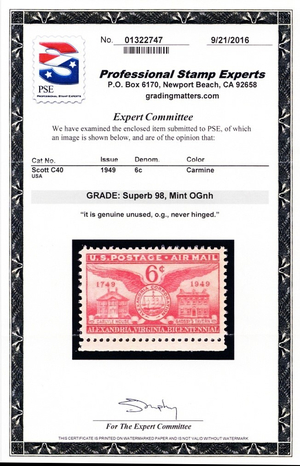 C40, Mint Superb NH 6¢ With PSE Graded 98 Certificate * Stuart Katz