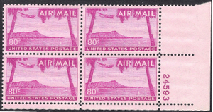 C46 80c HAWAII Airmail LR Plate Block-VF VLH OG