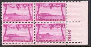 C46 80c HAWAII Airmail LR Plate Block-XF MNH OG