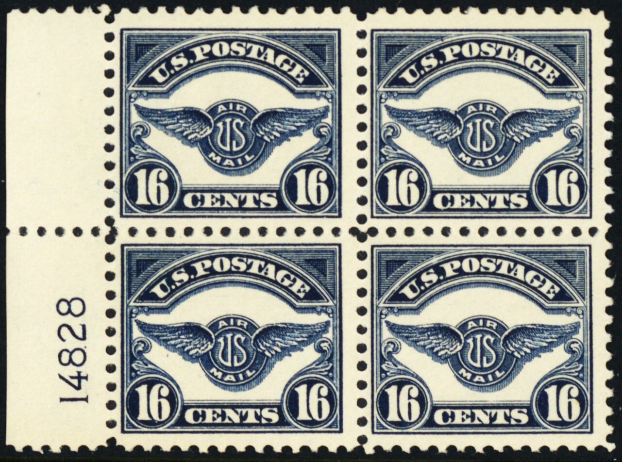C5, Mint FVF NH 16¢ Block of Four Airmail Stamps With PL# CV $480 * Stuart Katz