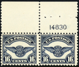 C5, Mint FVF NH 16¢ Pair of Airmail Stamps With PL# CV $240 * Stuart Katz