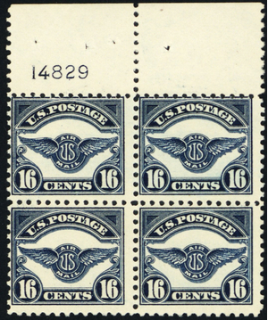C5, Mint NH 16¢ Block of Four Airmail Stamps With PL# CV $480 * Stuart Katz