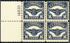 C5, Mint NH 16¢ Block of Four Airmail Stamps With PL# CV $480 *- Stuart Katz