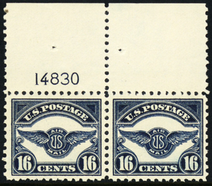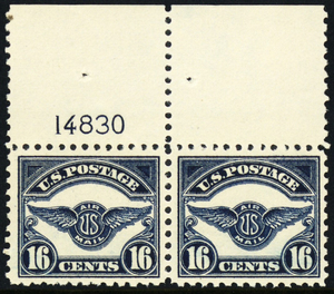 C5, Mint VF NH 16¢ Pair of Airmail Stamps With PL# CV $240 * Stuart Katz