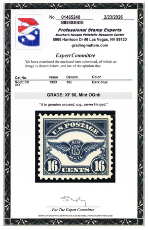C5, Mint XF NH 16ยข With PSE Graded 90 Certificate * Stuart Katz