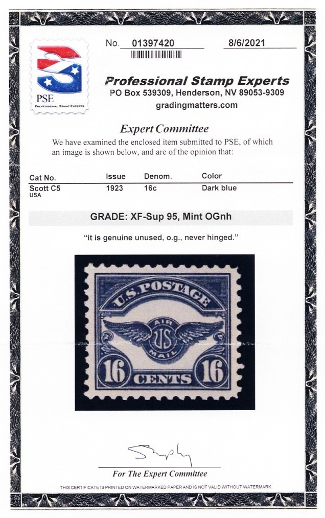 C5, Mint XF/Superb NH 16¢ With Graded 95 PSE Certificate - Stuart Katz