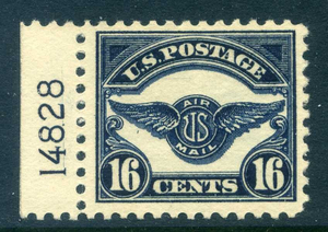 C5 with Plate Number, 16¢ Early Airmail, Mint Hinged, Scott $60