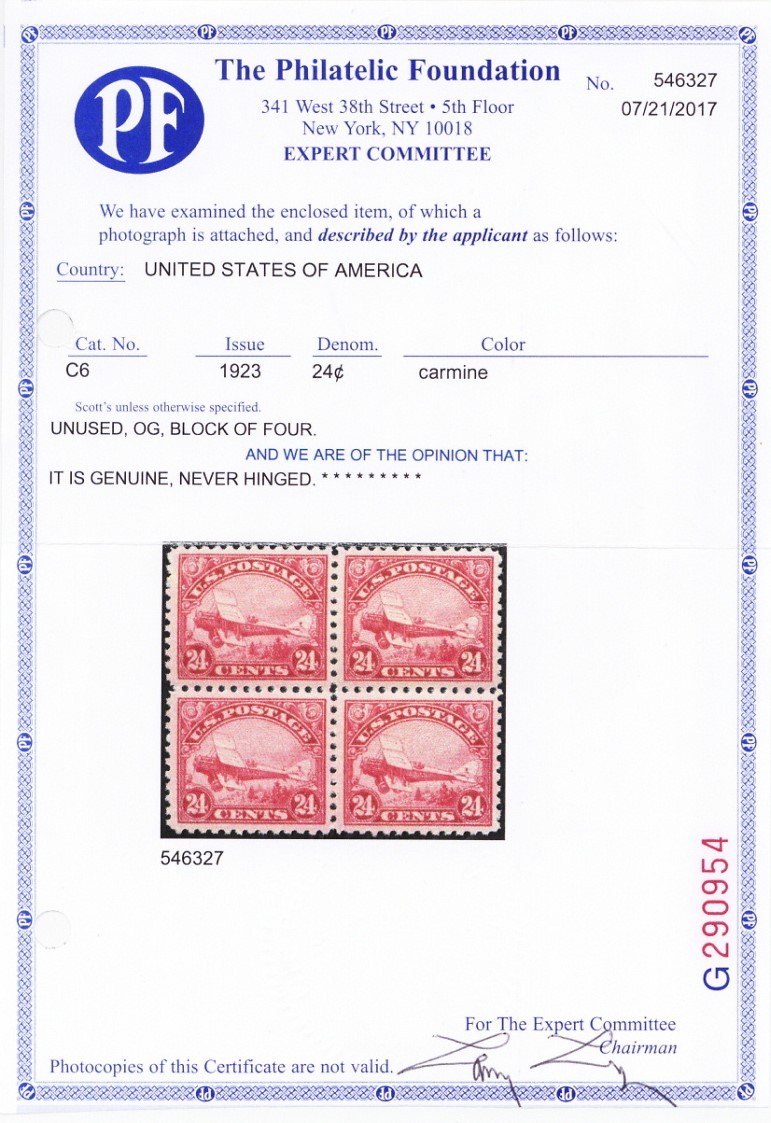 C6, Mint 24¢ VF NH With Clean PFC Certificate - Stuart Katz