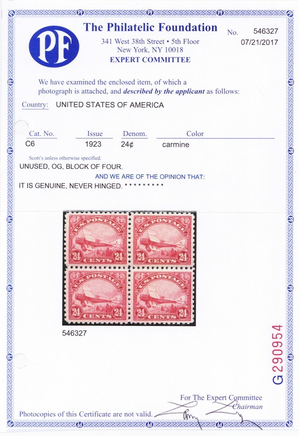 No refunds will be made after 60 days after the sale date unless extra time is granted. Due to the high cost of obtaining certificates we will only refund the cost of the stamp and not the cost of the certificate. For U.S. stamps only certificates from either APS, PSE or from the Philatelic Foundation are accepted, however "graded" certificates or "encased" items are not accepted.