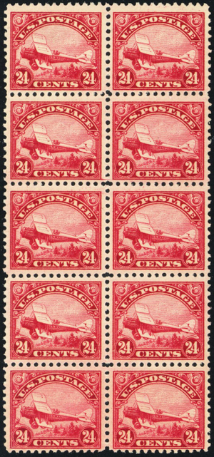 C6, Mint F-VF NH 24¢ Block of TEN Early Airmail Stamps CV $1300.00 - Stuart Katz