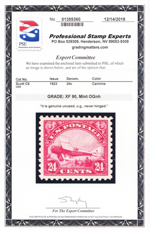 C6, Mint XF NH 24¢ Airmail - With Graded 90 PSE Certificate * Stuart Katz