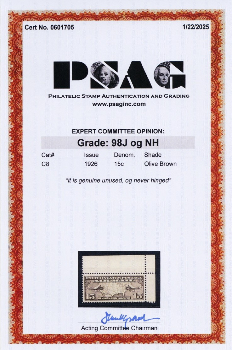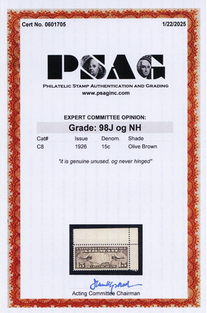 C8, Mint Superb NH 15¢ With Graded 98J JUMBO PSAG Certificate * Stuart Katz