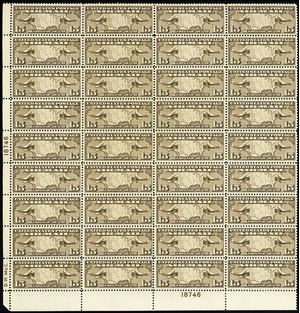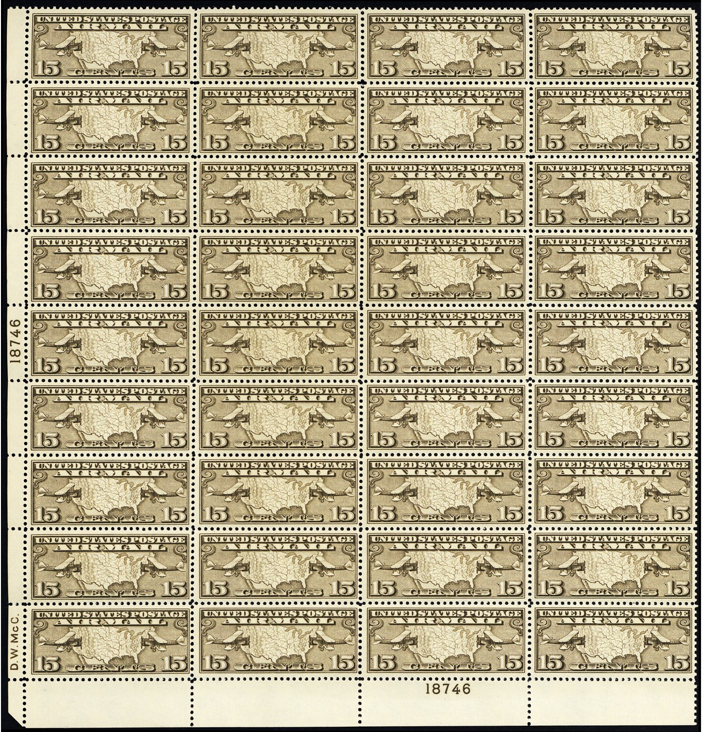 C8, MNH VF 15¢ Plate Block (2) of 36 Stamps - NICE PIECE! CV $204.00 Stuart Katz