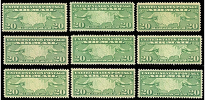 C9, Mint 20c Map - NINE VF-XF OG NH Stamps Cat $121.50+ - Stuart Katz