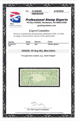 C9, Mint XF/Superb NH 20¢ - With Graded 95J JUMBO PSE Certificate - Stuart Katz