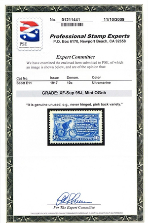 Due to the high cost of obtaining certificates we will only refund the cost of the stamp and not the cost of the certificate for stamps that sell for less than $250 that come back with a negative certificate. Stamps that sell for above $250 will receive a full refund for both the price of the stamp and cost of the certificate if it should come back not as described. For U.S. stamps only certificates from either APS, PSE or from the Philatelic Foundation are accepted, however "graded" certificates or "encased" items are not accepted.