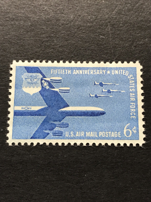 Scott C49- Air Force, 50th Anniversary- 6c MNH 1957- unused mint AIRMAIL stamp