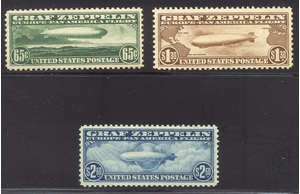 Scott #C13-15: 1930 Graf Zeppelin Issue Centering & Condition: Mint. Fresh. Very Fine set. C15 is Really Nice! Reverse (Gum Side): Original gum. Never Hinged. C14 has a light natural gum crease. Faults / Imperfections: None The item pictured is the actual item you are purchasing, unless otherwise noted. I also offer an interest-free layaway plan. Ask me about it!" All items will be mailed a day or two after payment is received. ![]() ![]() ![]() --------------------------------------------------------------------------------