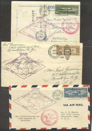 Scott #C13-15: 1930 Graf Zeppelin Set Centering & Condition: Very Fine set on Covers or (C13) Post Card with Reverse (Gum Side): N/A. Faults / Imperfections: None The item pictured is the actual item you are purchasing, unless otherwise noted. I also offer an interest-free layaway plan. Ask me about it!" All items will be mailed a day or two after payment is received. --------------------------------------------------------------------------------