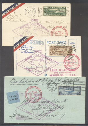 Scott #C13-15: 1930 Graf Zeppelin Set Centering & Condition: Very Fine set of Zeppelins on flown card or cover. Reverse (Gum Side): N/A Faults / Imperfections: None The item pictured is the actual item you are purchasing, unless otherwise noted. I also offer an interest-free layaway plan. Ask me about it!" All items will be mailed a day or two after payment is received. --------------------------------------------------------------------------------