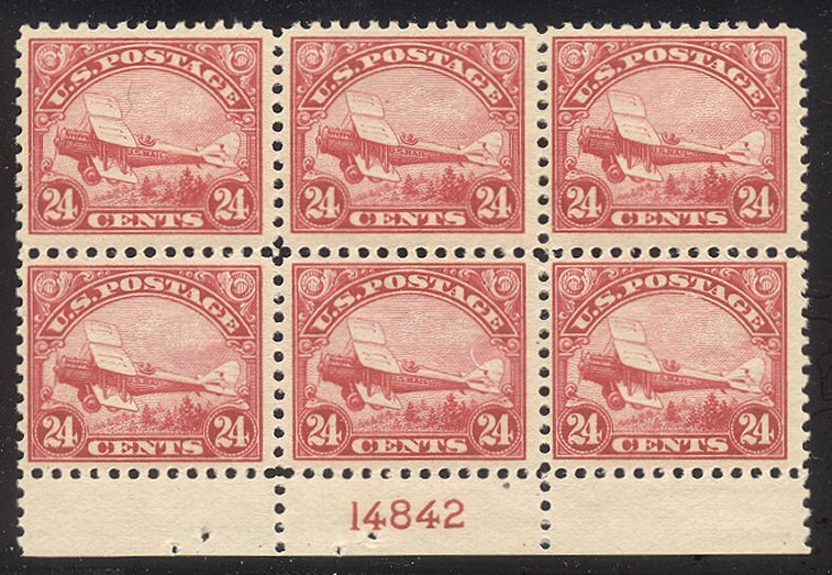 Scott #C6: 1923 24c DeHavilland Centering & Condition: Mint. Fresh. Fine-Very Fine Plate Block. Reverse (Gum Side): Original gum. Very Lightly Hinged. on stamp #2 Faults / Imperfections: None The item pictured is the actual item you are purchasing, unless otherwise noted. I also offer an interest-free layaway plan. Ask me about it!" All items will be mailed a day or two after payment is received. ![]() ![]() ![]() --------------------------------------------------------------------------------