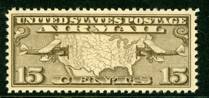 USA 1926 Airmail 15¢ Green Map & Mail Plane Scott C8 MNH V677