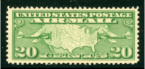 USA 1926 Airmail 20¢ Green Map & Mail Plane Scott C9 Mint L829