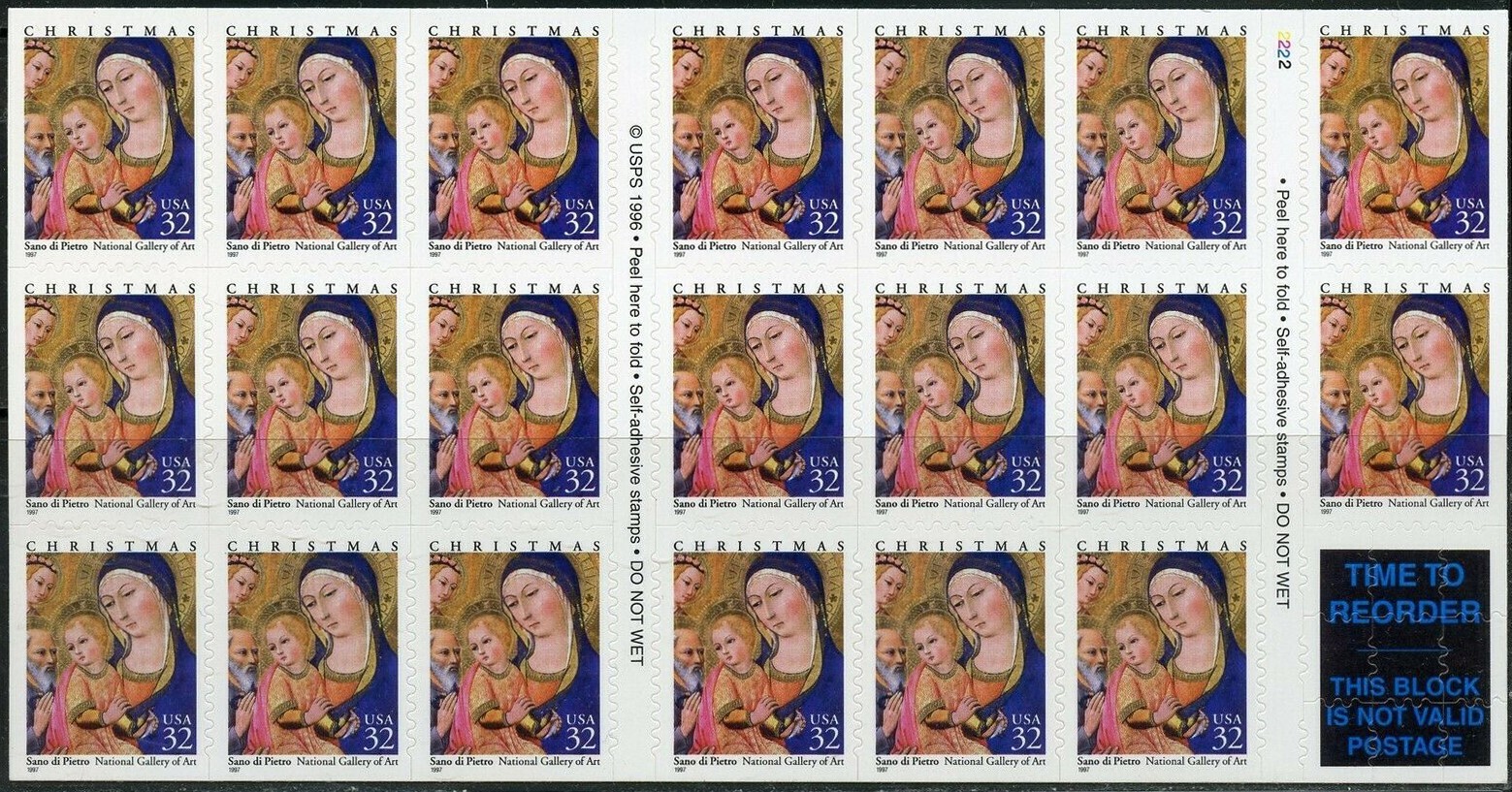 3176a, Mint NH 32¢ Madonna & Child Christmas Pane of 20 - Stuart Katz